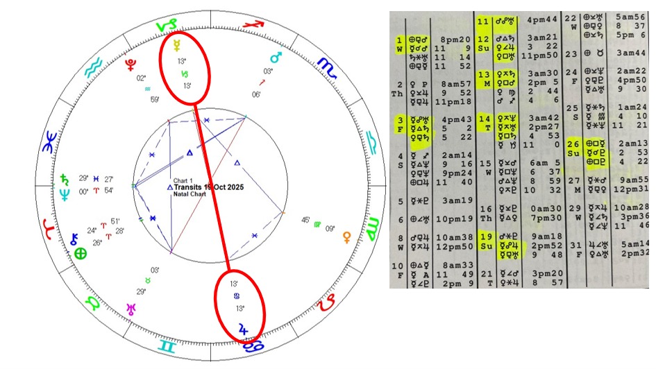 Venüs’ün Terazi burcuna geçişinin ardından ilk açısı Neptün ile karşıtlık olacak. Bu karşıtlık toplumsal ve özel ilişkiler açısından çalkantılı bir zaman dilimine işaret eder. İlişkilerde hayal kırıklıkları yüzünden mağduriyet, çözülme, boşanma, intihar vakaları artabilir; yozlaşma ve skandallar görülebilir. Kadınlarla ilgili konularda üzüntüler, sevilen sanatçılardan bazılarının kayıpları, sanatçıların hayatlarında yaşanan dejenerasyon veya skandalların topluma yansıması söz konusu olabilir. Karşıt açı özellikle 14 Ekim’de günün ilk yarısında çok etkili olacak.