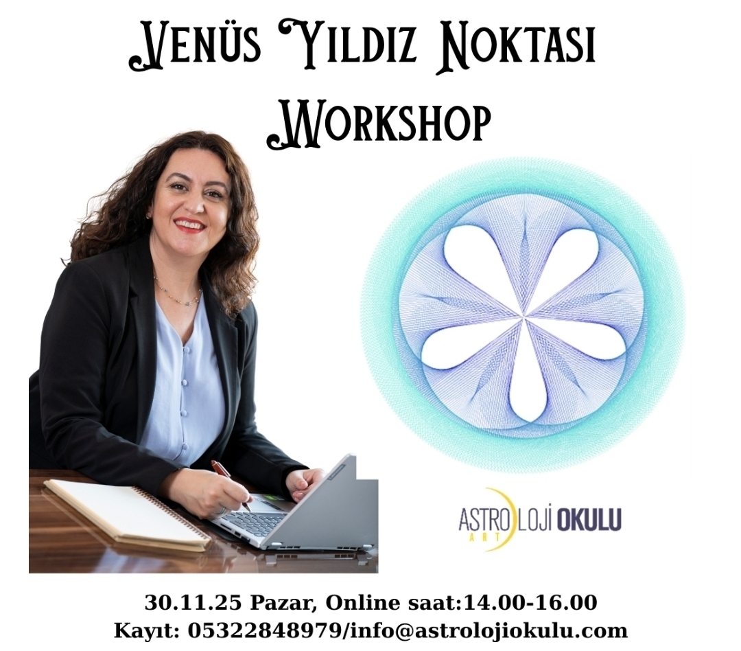 Venüs’ün Güneş etrafındaki eşsiz yörüngesinin 8 yıllık döngülerde meydana getirdiği pentagram Venüs Yıldız Noktası olarak adlandırılır. Her yıl gerçekleşen Venüs-Güneş kavuşumları da bu noktaları oluşturur. Önümüzdeki dönemde en yakın tarihte yaşayacağımız Venüs Yıldız Noktası 6 Ocak 2026 tarihinde gerçekleşecek. Üstelik Mars’ın da bu kavuşuma eşlik etmesinden dolayı ekstra dikkat çekici enerjileri barındırıyor. Burcu Çakır bu sunumda ilişkilerimiz, başarılarımız ve hayatımızdaki önemli kilometre taşlarını keşfetmemiz adına Venüs Yıldız Noktası hakkında önemli bilgiler verecek. Ayrıca kayıt esnasında doğum bilgilerini ileten katılımcıların haritaları üzerinde 6 Ocak Venüs Yıldız Noktası işaretlenerek manası yorumlanacaktır.