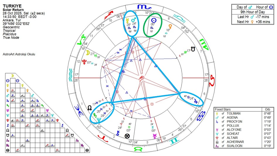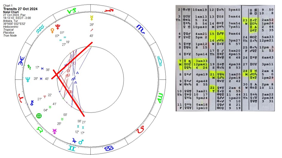29 Ekim’den başlayarak 4 Kasım’a kadar uzanan birkaç günlük süreçte Merkür ve Mars’ın Uranüs ile karşıt açıları çok etkili olacak. Sismik aktivitede önemli ölçüde artışa işaret ediyor olabilir.