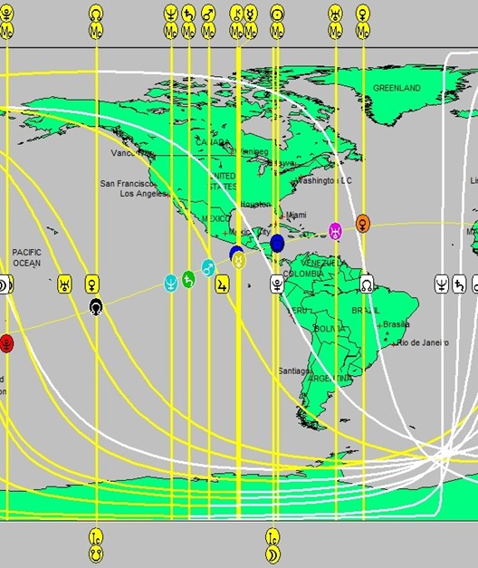 Bu dolunayın gezegen hatları özellikle Amerika Birleşik Devletleri’ni gösteriyor. Bu bölgede Mars ve Satürn hatları da geçtiği için türbülanslı bir enerji akışı söz konusu. Önemli açıklamalar, otorite figürlerine yönelik sert etkileşimler devrede. Güney Amerika üzerinden geçen Uranüs hattı, 29 dereceye de denk düştüğü için burada bir türbülansı işaret edebilir.